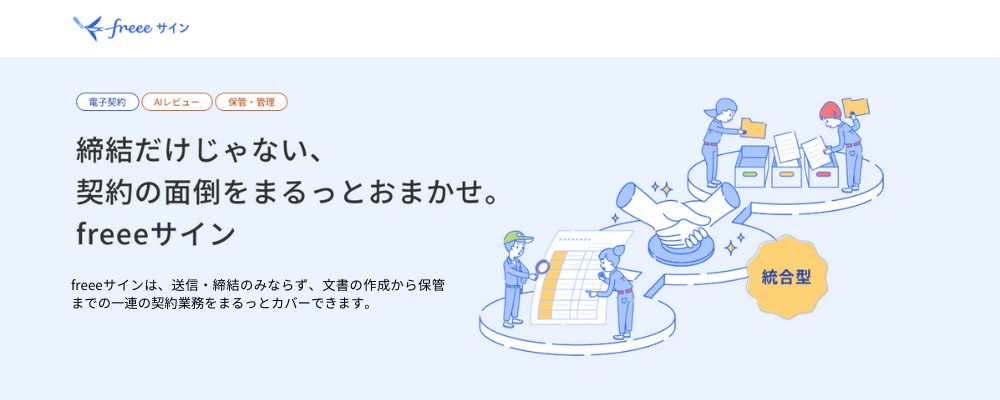 freeeサインとは、契約書作成・締結・管理をオンラインで一元化できる電子契約サービスです。 弁護士監修のもと安心して利用でき、NDAや業務委託など、用途に応じたテンプレートを予め登録しておけるので、承認にかかるタイムロスやコミュニケーションの手間を軽減します。 契約書の印刷や製本、郵送もオンラインで実施でき、出張や在宅勤務中でも契約締結が可能です。 過去の契約書も一括で管理でき、契約業務全体の効率化を実現します。