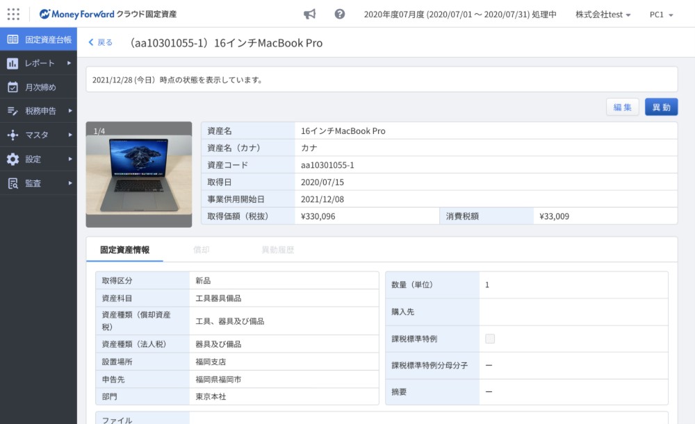 マネーフォワード クラウド固定資産