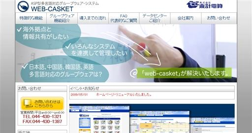 WEB-CASKETは、神奈川県川崎市に本社を構えるシステム開発会社、東計電算が開発・提供するクラウド型多言語対応グループウェアです。メール・スケジュール・掲示板・日報・ドキュメント・ワークフロー・施設管理・ToDoなどの多彩な機能を搭載。海外拠点間の情報共有・連携に威力を発揮するマルチリンガル機能も利用できます。外部システム連携で業務ポータルとしても活用可能です。