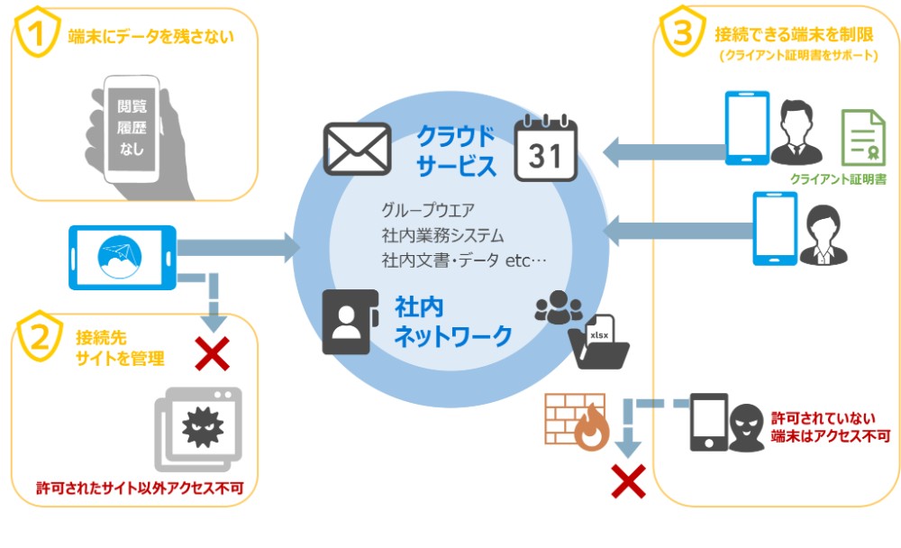 端末にデータを残さないセキュアブラウザ機能